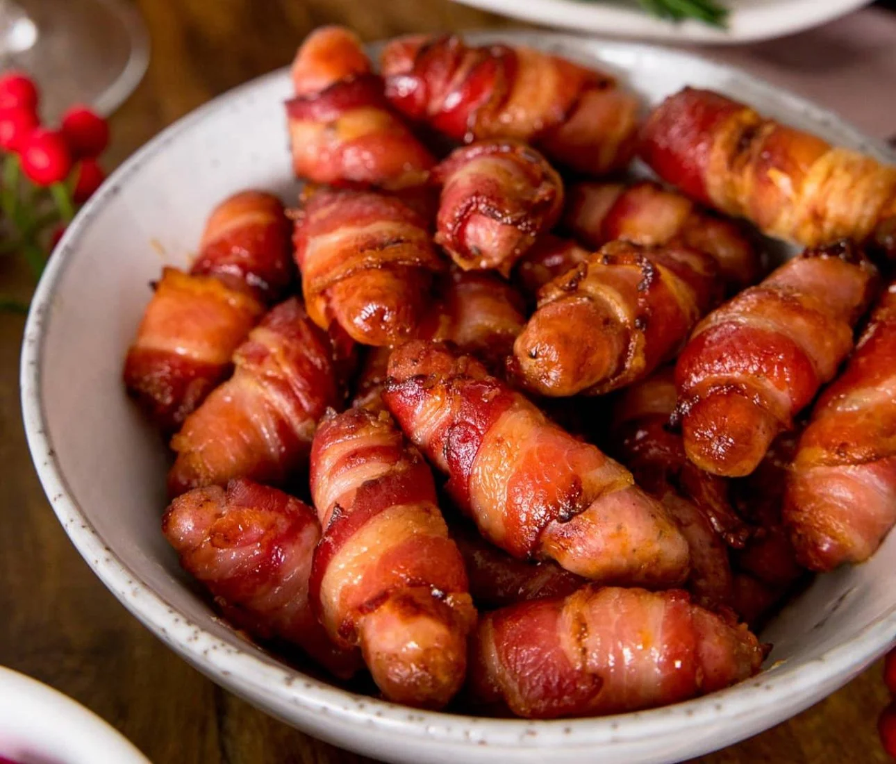 Premium butchers sausages wrapped in smoked streaky bacon and glazed in local honey